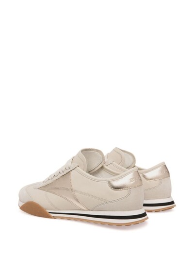 Подробнее о товаре: • бежевый/золотистый • телячья кожа • дизайн со вставками • тисненый логотип на язычке • шнуровка спереди • закругленный носок • стелька с логотипом • резиновая подошва