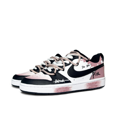 Кроссовки Nike Court Borough Skateboarding Shoes Women's Low-top Pink, цвет Dirty powder graffiti bq5448-115(team288-脏粉涂鸦女款黑粉) | dirty powder graffiti