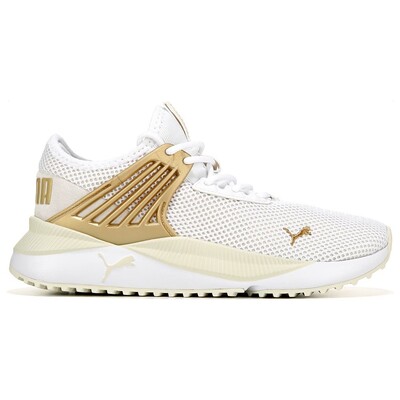 Оставайтесь в комфорте и прохладе в женских кроссовках Puma Pacer Future. Верх из дышащей трикотажной сетки в стиле кроссовок для повседневной носки с круглым носком Шнуровка с сетчатой вставкой из термополиуретана по бокам Язычок для подтягивания Гибкий воротник для носка Мягкая подкладка с мягкой стелькой Легкая промежуточная подошва из ЭВА Прочная резиновая подошва с хорошим сцеплением