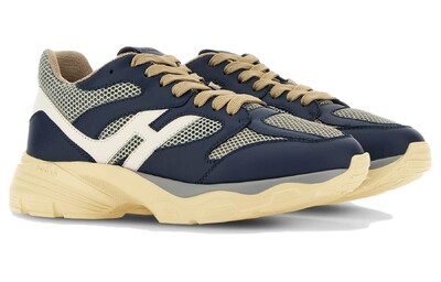 Кроссовки из кожи с панелями Hogan, синий/серый/белый hxm6650fj00td10sse | blue/gray/white