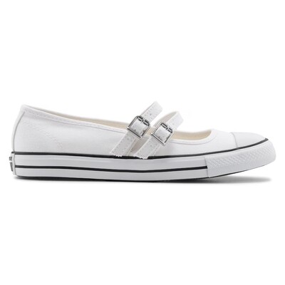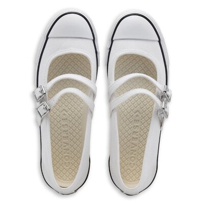 Более низкие и легкие, но не менее культовые женские кеды Converse Chuck Taylor All Star Dainty Mary Jane уже в продаже. Верх из парусины в стиле кроссовок Mary Jane с круглым носком Двойные ремешки с пряжками Mary Jane Сверхнизкий профиль Одевайтесь как по-нарядному, так и по-повседневному Гладкая подкладка с амортизацией OthoLite обеспечивает оптимальный комфорт Знаменитый номерной знак All Star Прочная резиновая подошва