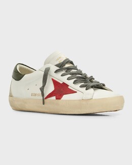 Мужские кожаные низкие кеды Super-Star Golden Goose, цвет White/Red/Dark Green prod258780184 | white/red/dark green