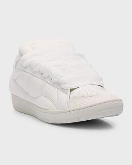 Мужские стеганые кожаные кроссовки с кружевом Lanvin, цвет Whitewhite prod264120084 | whitewhite