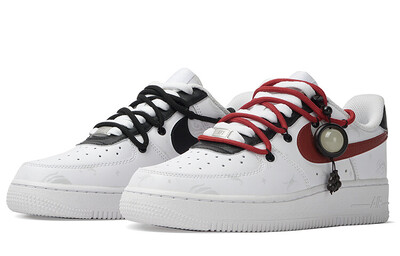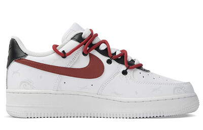 Кроссовки Nike Air Force 1, белый/красный cw2288-111(team拾柒-男款低帮黑蛟龙珠板鞋黑白