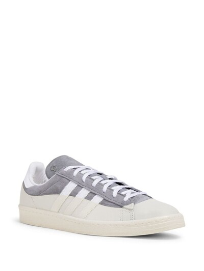 Серый/белый, кожа, замша, вставки, знаковый логотип 3-Stripes, логотип-трилистник, контрастный задник с логотипом, язычок с вышитым логотипом, шнуровка спереди, закругленный носок, стелька с логотипом и плоская резиновая подошва.