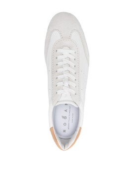 Подробнее о товаре: • белый • телячья кожа • дизайн со вставками • замшевые вставки • шнуровка спереди • контрастный задник • перфорированный логотип в виде буквы H • язычок с логотипом • кожаная стелька с логотипом • замшевая подкладка • плоская резиновая подошва
