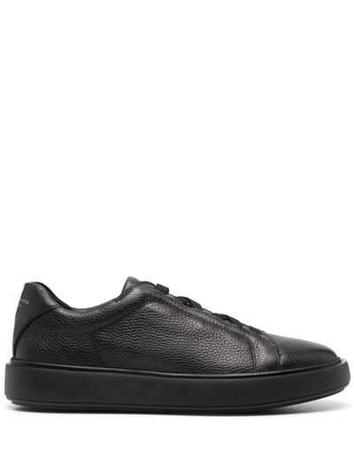 Подробнее о товаре: • черный • телячья кожа • зернистая текстура • язычок с логотипом • логотип на пятке • закругленный носок • эластичные шнурки спереди • кожаная подкладка • уплотненная щиколотка • кожаная стелька с логотипом • массивная резиновая подошва • В комплект входит мешок-пыльник для хранения.