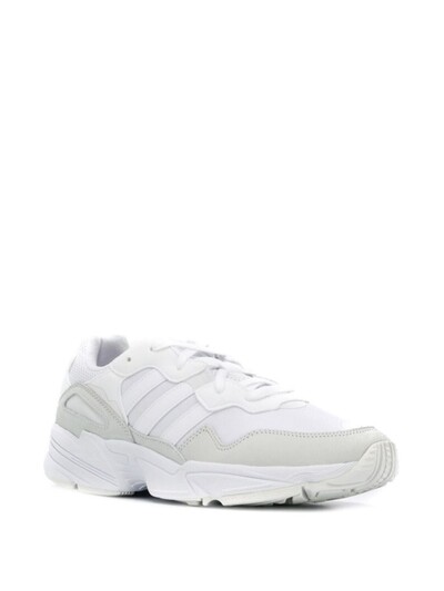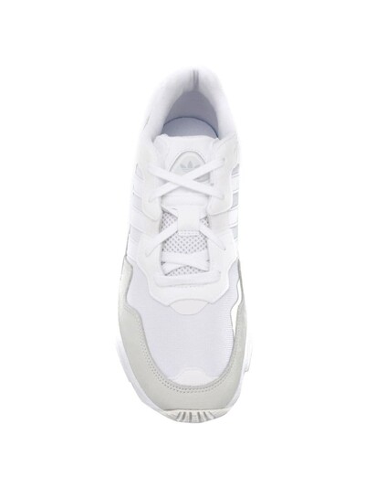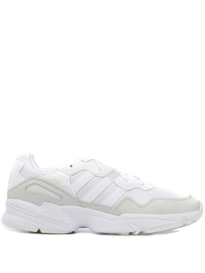 Спорт лег в основу идеологии adidas. Бренд создает обувь для разных видов спорта и повседневной жизни, объединяя дизайн и инновации. В коллекцию весна-лето 2019 вошли белые кроссовки Yung с замшевыми вставками от adidas (Адидас). Закругленный носок, шнуровка спереди, вставки из сетки, стелька с логотипом и белая резиновая подошва.
