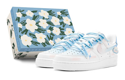 Мужские кроссовки для скейтбординга Nike Air Force 1, Pink and Blue cw2288-111(teams-粉蓝小熊男s-box) | pink and blue