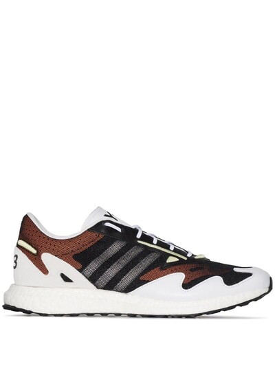 Кроссовки Rhisu Run от Y-3. Закругленный носок, шнуровка спереди, язычок с логотипом, фирменный дизайн каблука и фирменная деталь с тремя полосками.