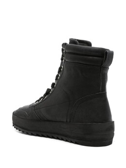 Подробнее о товаре: • черный • телячья кожа • закругленный носок • перфорированный носок • язычок с логотипом • петля для подтягивания сзади • длина по щиколотку • стелька с логотипом • подкладка из футера • плоская резиновая подошва • шнуровка спереди